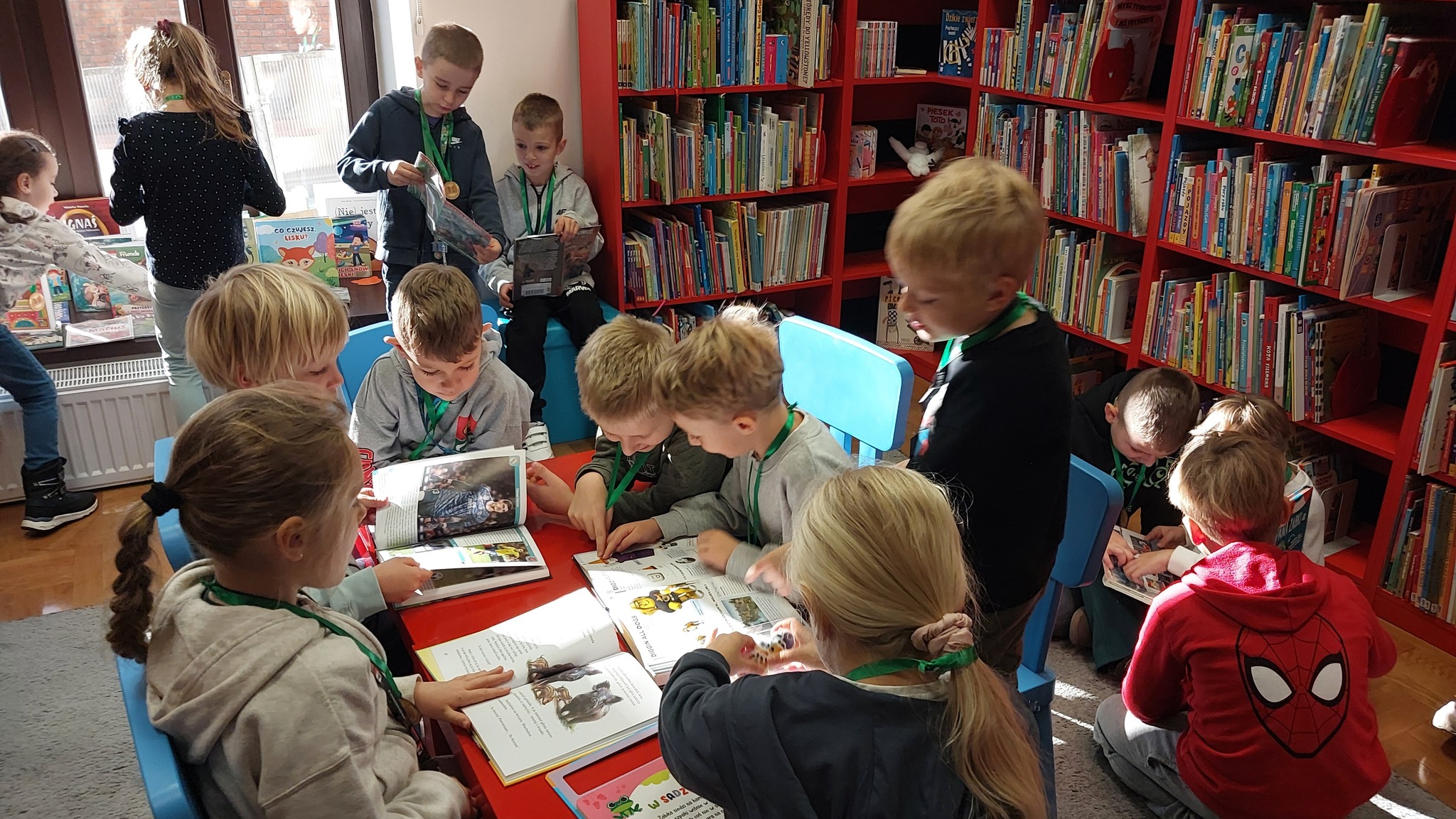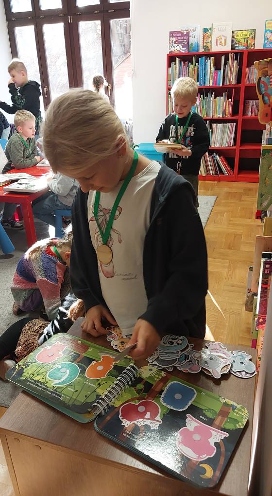 W ostatni dzień października odbyło się kolejne uroczyste przyjęcie pierwszoklasistów do grona czytelników naszej biblioteki. Podczas tej porannej piątkowej wizyty uczniowie klasy pierwszej z Zespołu Szkolno – Przedszkolnego Nr 1 w Leżajsku z wielkim zapałem przeglądali kolejne książki wyszukiwane w zbiorach biblioteki, co zdecydowanie potwierdziło ich gotowość do stania się pełnoprawnymi czytelnikami. Dlatego też po zapoznaniu się z najważniejszymi regułami obowiązującymi w bibliotece i utrwaleniu wiedzy, jak należy dbać o książki, nastąpiło uroczyste pasowanie na czytelnika. Tradycyjnie na pamiątkę tego wydarzenia każdy uczeń otrzymał okolicznościowy medal.