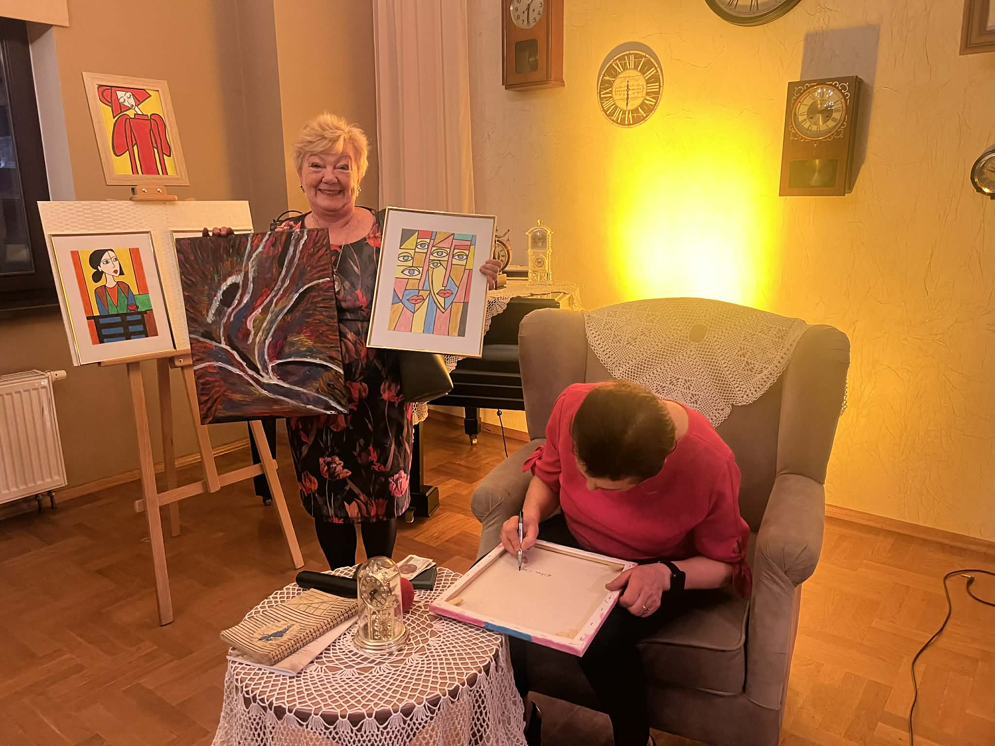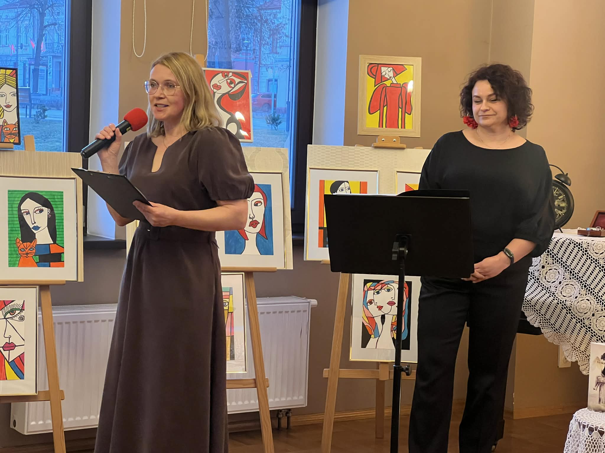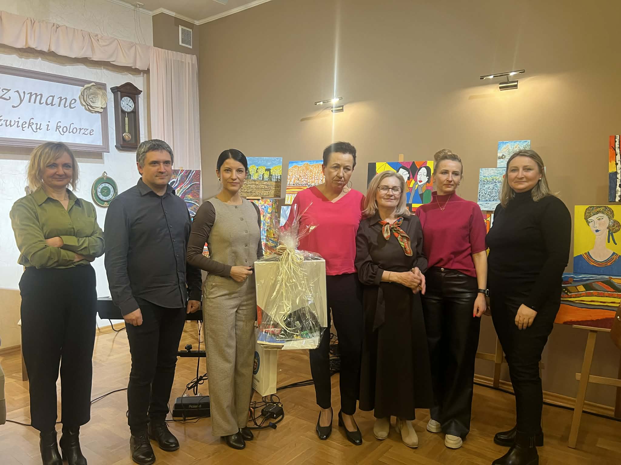 Muzyczną część spotkania wypełnił recital autorski w wykonaniu niezwykłego duetu Agnieszki Stróż oraz Tomasza Frączka. Artyści zabrali słuchaczy w poruszającą muzyczną podróż, w której słowo splatało się z dźwiękiem, a każda nuta niosła ze sobą autentyczne emocje. Ich interpretacje były pełne wrażliwości, subtelności i głębokiego przekazu. Publiczność wsłuchiwała się w kolejne utwory w skupieniu i zachwycie, pozwalając, by muzyka dotykała najczulszych strun serca. Kolejna odsłona wieczoru należała do Ewy Kazak – malarki i poetki, która podzieliła się z uczestnikami swoją twórczością. Artystka czytała własne wiersze, opowiadała o procesie tworzenia i o tym, jak sztuka pomaga odnaleźć światło nawet w trudnych momentach życia. Jej słowa były świadectwem siły ducha i wrażliwości, a prezentowane prace pokazały, że nawet w obliczu życiowych trudności można tworzyć dzieła pełne piękna i głębi. To spotkanie było nie tylko prezentacją sztuki, ale także inspirującą opowieścią o wytrwałości i miłości do tworzenia. Serdecznie dziękujemy wszystkim, którzy spędzili z nami ten wzruszający wieczór i zatrzymali swój czas, by wsłuchać się w muzykę, zachwycić śpiewem i odkrywać piękno malarstwa. Szczególne podziękowania kierujemy do pani Ewy Gduli radnej Rady Miejskiej w Leżajsku, która włożyła wiele serca w przygotowanie tego wydarzenia.