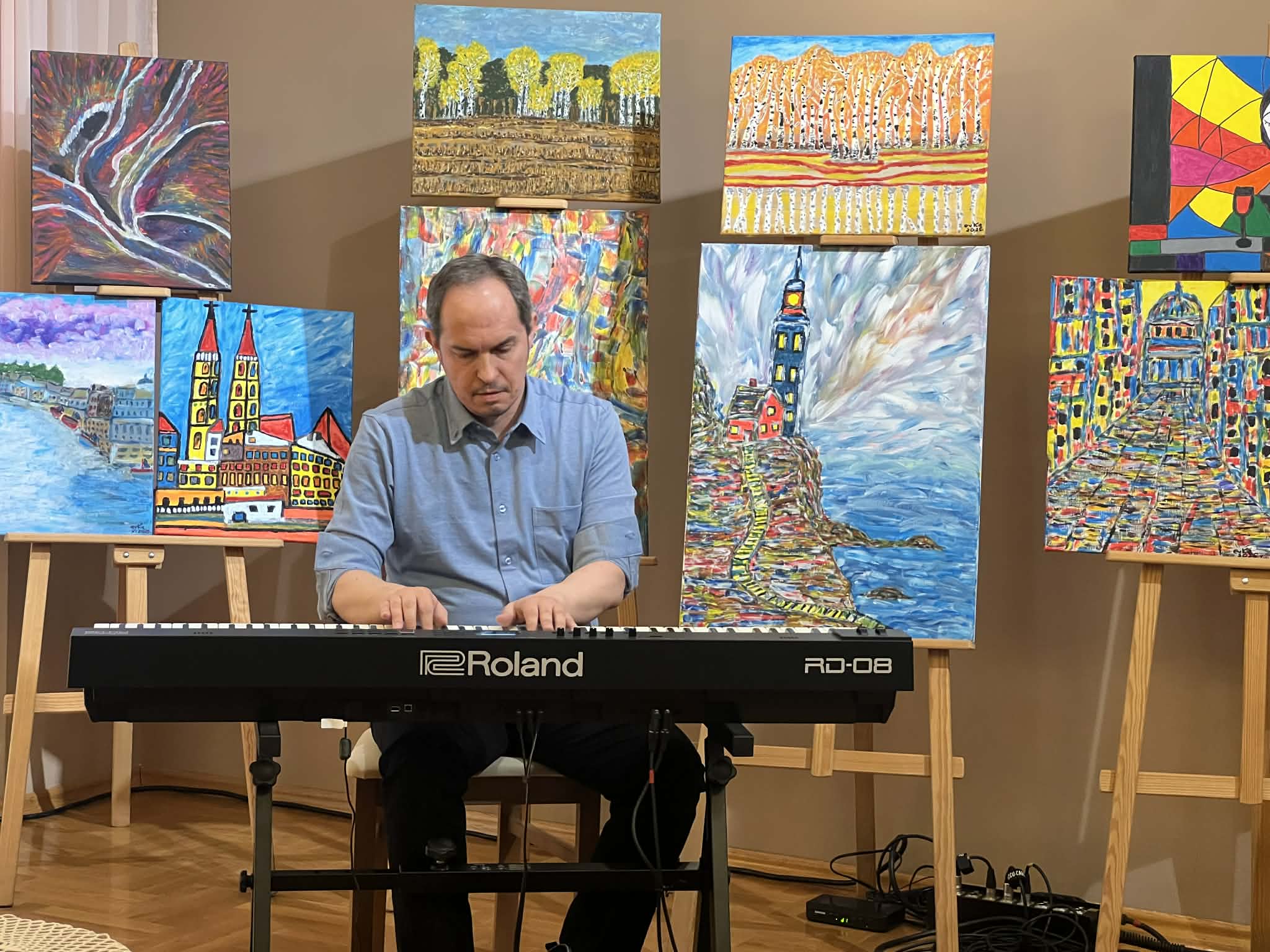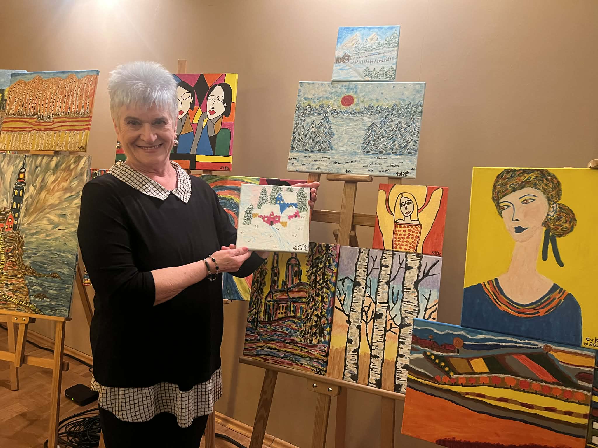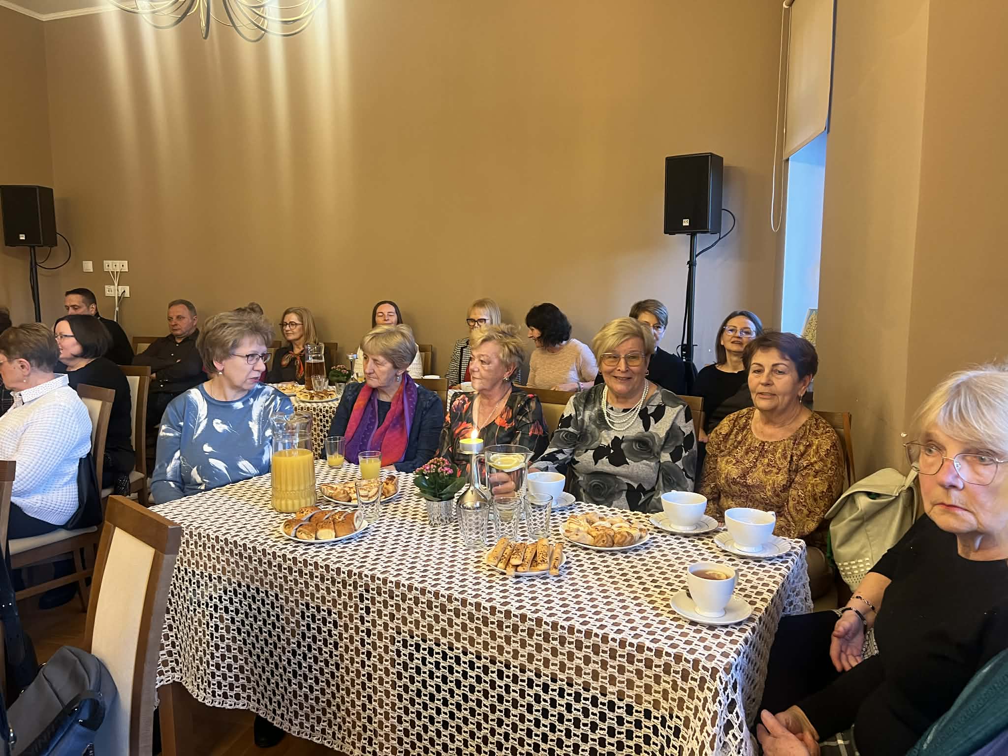 Muzyczną część spotkania wypełnił recital autorski w wykonaniu niezwykłego duetu Agnieszki Stróż oraz Tomasza Frączka. Artyści zabrali słuchaczy w poruszającą muzyczną podróż, w której słowo splatało się z dźwiękiem, a każda nuta niosła ze sobą autentyczne emocje. Ich interpretacje były pełne wrażliwości, subtelności i głębokiego przekazu. Publiczność wsłuchiwała się w kolejne utwory w skupieniu i zachwycie, pozwalając, by muzyka dotykała najczulszych strun serca. Kolejna odsłona wieczoru należała do Ewy Kazak – malarki i poetki, która podzieliła się z uczestnikami swoją twórczością. Artystka czytała własne wiersze, opowiadała o procesie tworzenia i o tym, jak sztuka pomaga odnaleźć światło nawet w trudnych momentach życia. Jej słowa były świadectwem siły ducha i wrażliwości, a prezentowane prace pokazały, że nawet w obliczu życiowych trudności można tworzyć dzieła pełne piękna i głębi. To spotkanie było nie tylko prezentacją sztuki, ale także inspirującą opowieścią o wytrwałości i miłości do tworzenia. Serdecznie dziękujemy wszystkim, którzy spędzili z nami ten wzruszający wieczór i zatrzymali swój czas, by wsłuchać się w muzykę, zachwycić śpiewem i odkrywać piękno malarstwa. Szczególne podziękowania kierujemy do pani Ewy Gduli radnej Rady Miejskiej w Leżajsku, która włożyła wiele serca w przygotowanie tego wydarzenia.